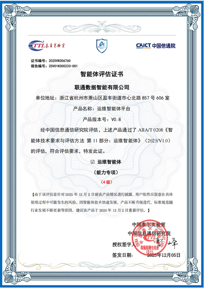 太全面!联通元景万悟·运维智能体平台通过4级评估